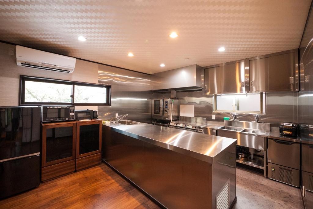 プロ仕様のキッチンが完備されていて、冷蔵庫・バルミューダのトースター・調理器具・食器・調味料までそろっています。